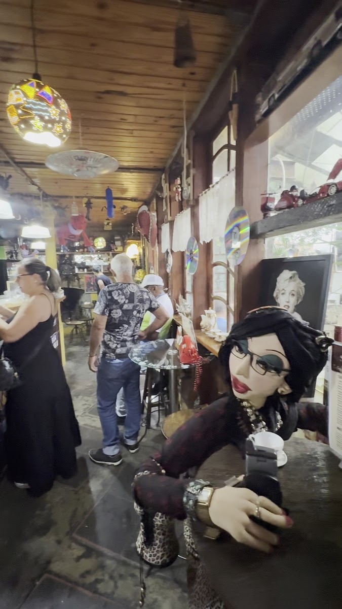 Local pitoresco com antiguidades e itens colecionáveis. Tomamos um café expresso e um bolo de cenoura que estava muito bom por sinal.